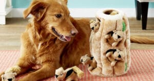 What’s more fun than chasing squirrels at the park? Chasing squirrels at home, of course! Now there’s a toy version of your pup’s favorite pastime. Just stuff the squeaky squirrels in the soft tree trunk, and watch your dog pull them out one by one. To keep the game going, just stuff them in again and again. These squirrels love to play!! It also comes in a bee and bird model.
